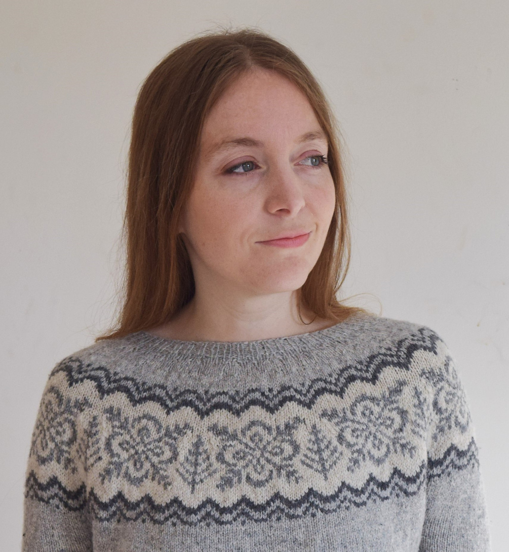 This seamless, circular yoke sweater is knit in the round and is a top down hybrid. Designed to have a relaxed fit with 2-5” of positive ease at bust. You can choose between 3 options for body shaping: Subtle hourglass shaping, straight body, or a-line, and there are 2 options for neckline styles: ribbed or rolled neckline. The knitting starts with a provisional cast on with waste yarn using a simple long tail cast on. No additional skills are needed for this method (called COWYAK) and the transition between the directions in knitting is completely invisible. The stranded yoke is worked and then the neckline is bound off. Next, the body and sleeves are worked top down from. With this method of construction, the sweater has live stitches at the neckline and edges of the body and sleeve cuffs. This makes for easy customization of body and sleeve lengths and neckline width.
