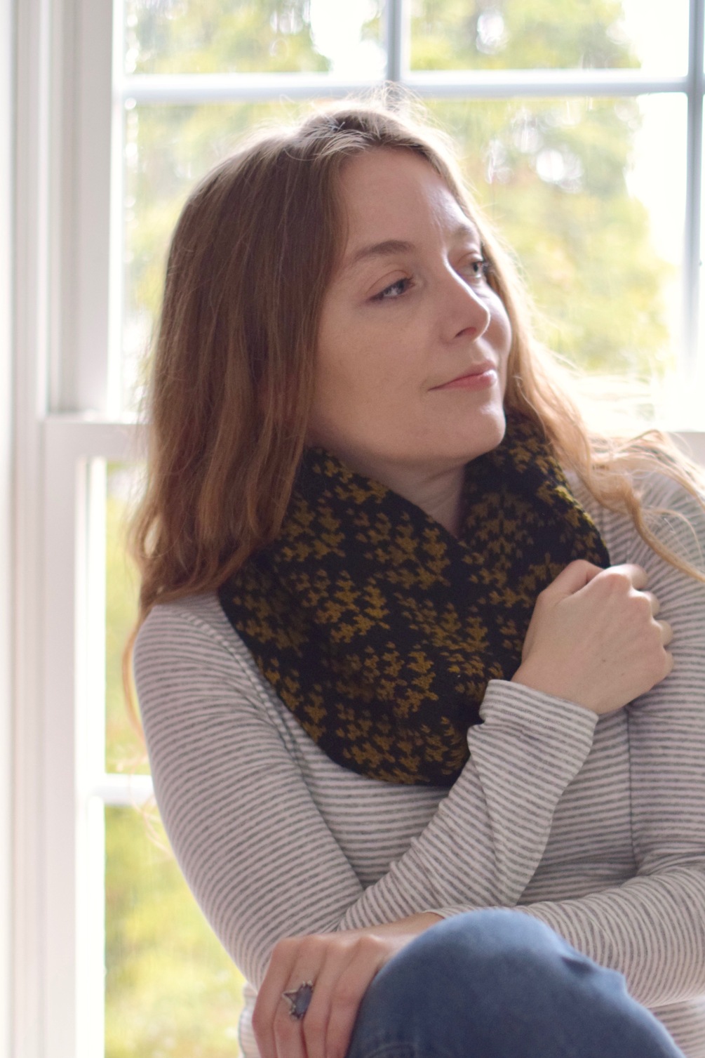 This design is inspired by a fern filled forest. This loop cowl is knit in the round lengthwise. Once the desired length of the cowl has been reached, the two ends of the cowl are joined together with Kitchener stitch (link to tutorial included) to form a continuous, double-sided loop. This is an easy colorwork project and an approachable intro for those who are new to stranded knitting. I love loop cowls because they go on with out any fuss, and fit well underneath a warm winter jacket.