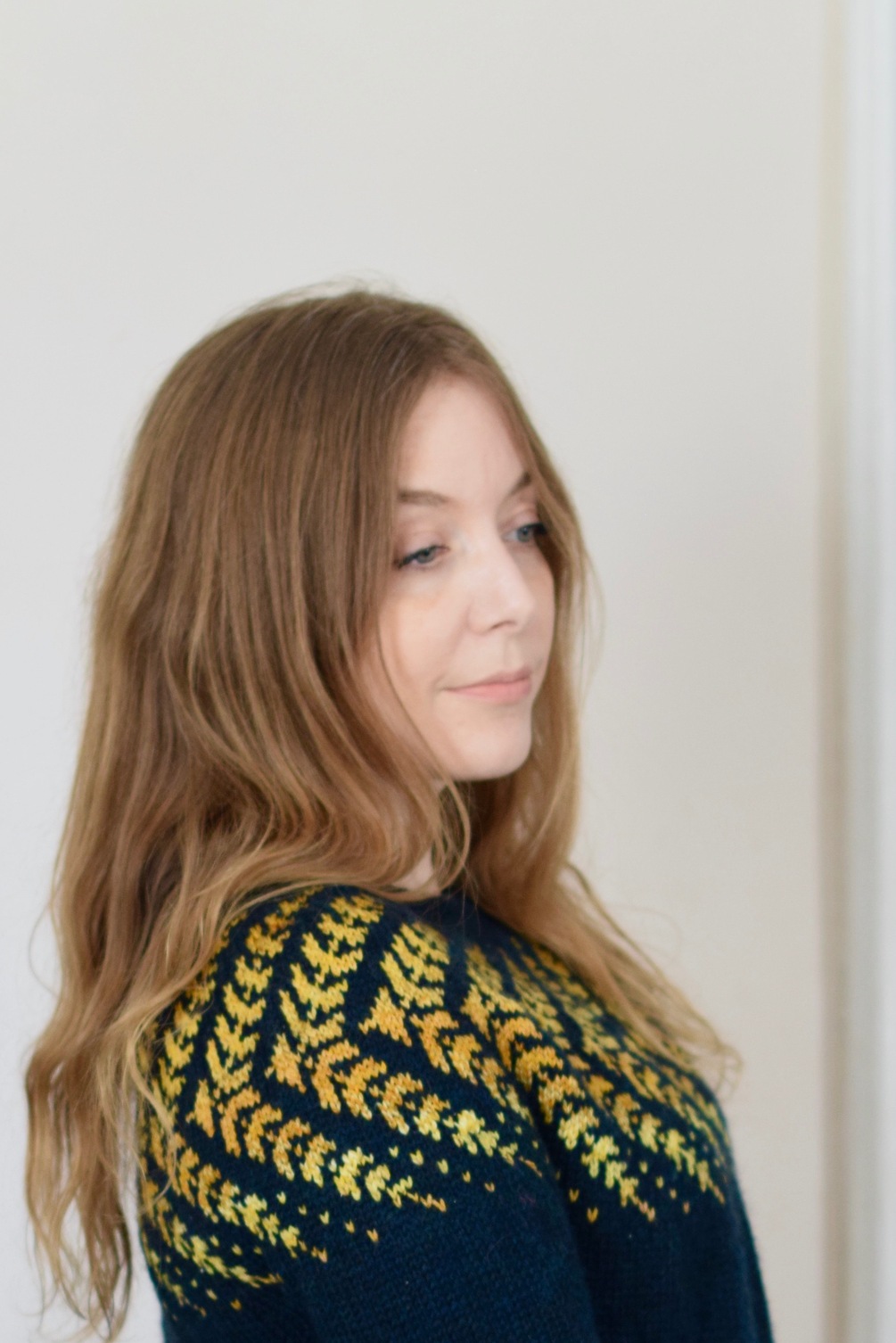 Every knitting project holds memories and tells a story. I can look at a finished piece and remember what was going on at the time. Some sweaters hold happy memories, others might remind me of more challenging periods in my life while also reminding me of my perseverance. The Storyteller is a long-sleeved, top-down, seamless yoke sweater that begins with two neckline options- crew, or slightly more open. DK or worsted weight yarn make for quick knitting and this fun colorwork yoke is hard to put down! Choose a solid color for your colorwork, multicolored yarn, or create your own gradient with colors in your stash.