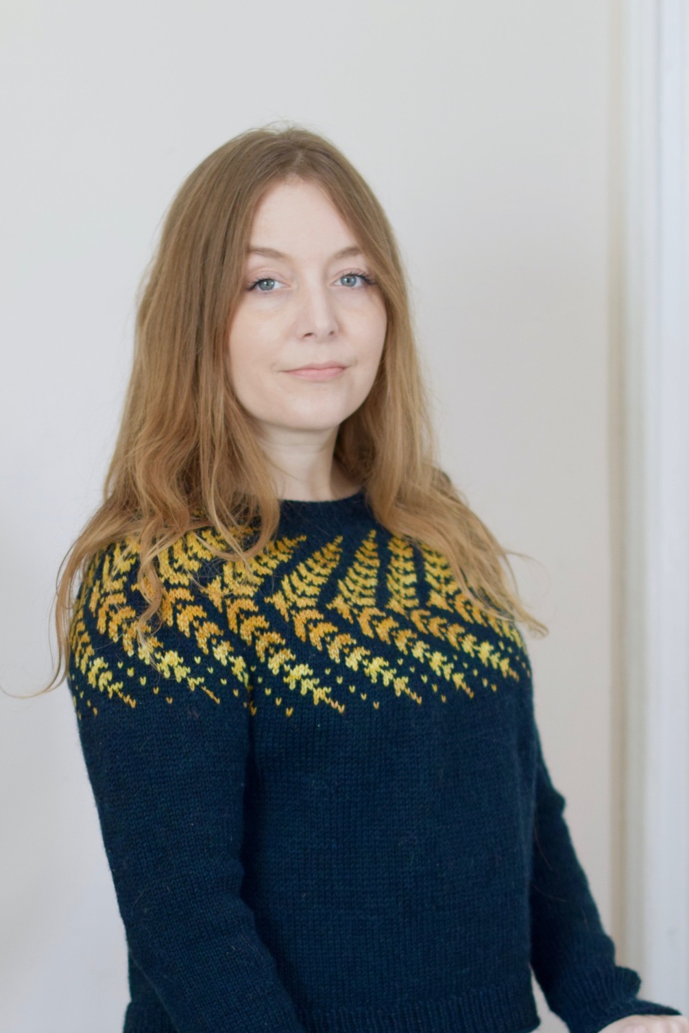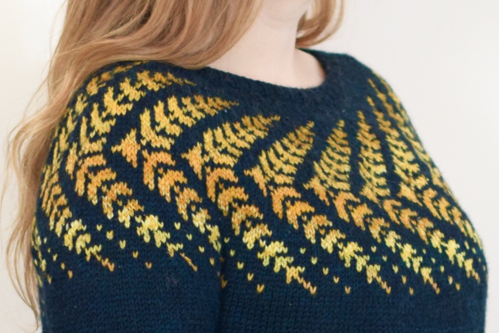 Every knitting project holds memories and tells a story. I can look at a finished piece and remember what was going on at the time. Some sweaters hold happy memories, others might remind me of more challenging periods in my life while also reminding me of my perseverance. The Storyteller is a long-sleeved, top-down, seamless yoke sweater that begins with two neckline options- crew, or slightly more open. DK or worsted weight yarn make for quick knitting and this fun colorwork yoke is hard to put down! Choose a solid color for your colorwork, multicolored yarn, or create your own gradient with colors in your stash.